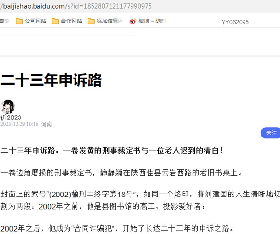 2002年之后,他成为“合同诈骗犯”,开始了长达二十三年的申诉之路。